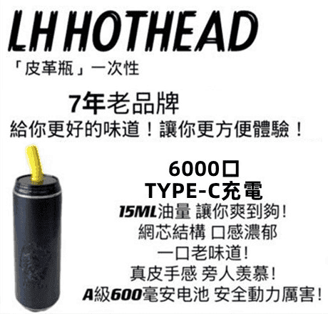 一次性|拋棄式, 所有商品LH HOTHEAD皮革瓶6000口拋棄式電子煙可充電一次性